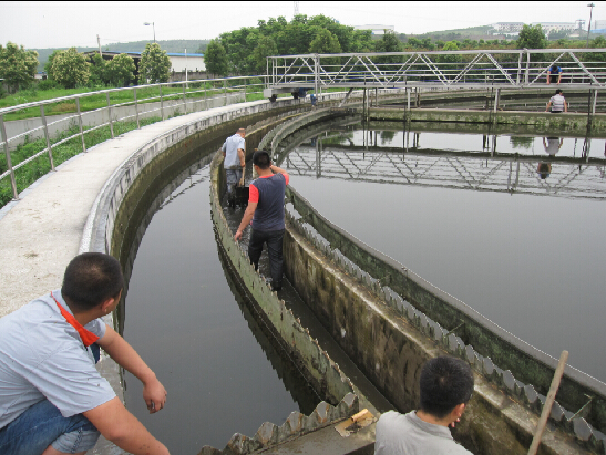 6月9日楊樹港污水處理廠組織全廠職工對二沉池淤泥進行了徹底清理。