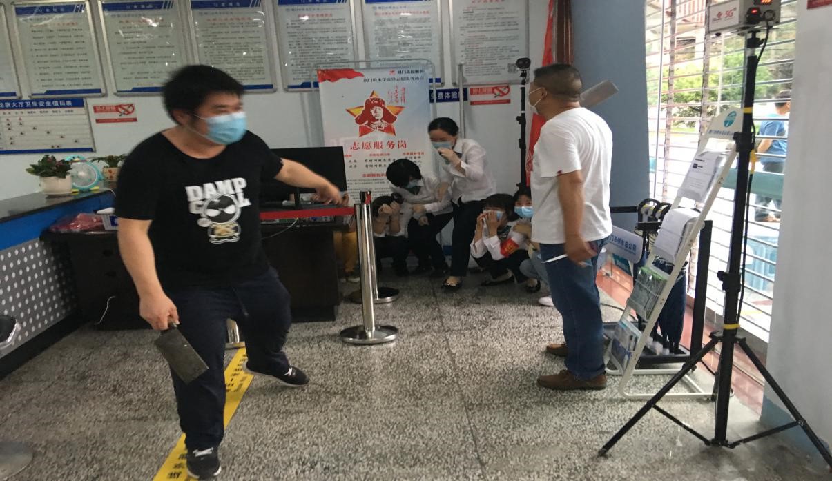 “搶劫!都老實(shí)點(diǎn)!雙手抱頭!蹲旁邊去……”兩蒙面男子持刀沖進(jìn)了收費(fèi)中心龍泉營(yíng)業(yè)廳。原來(lái),一場(chǎng)別開生面的防盜搶演練正在進(jìn)行。