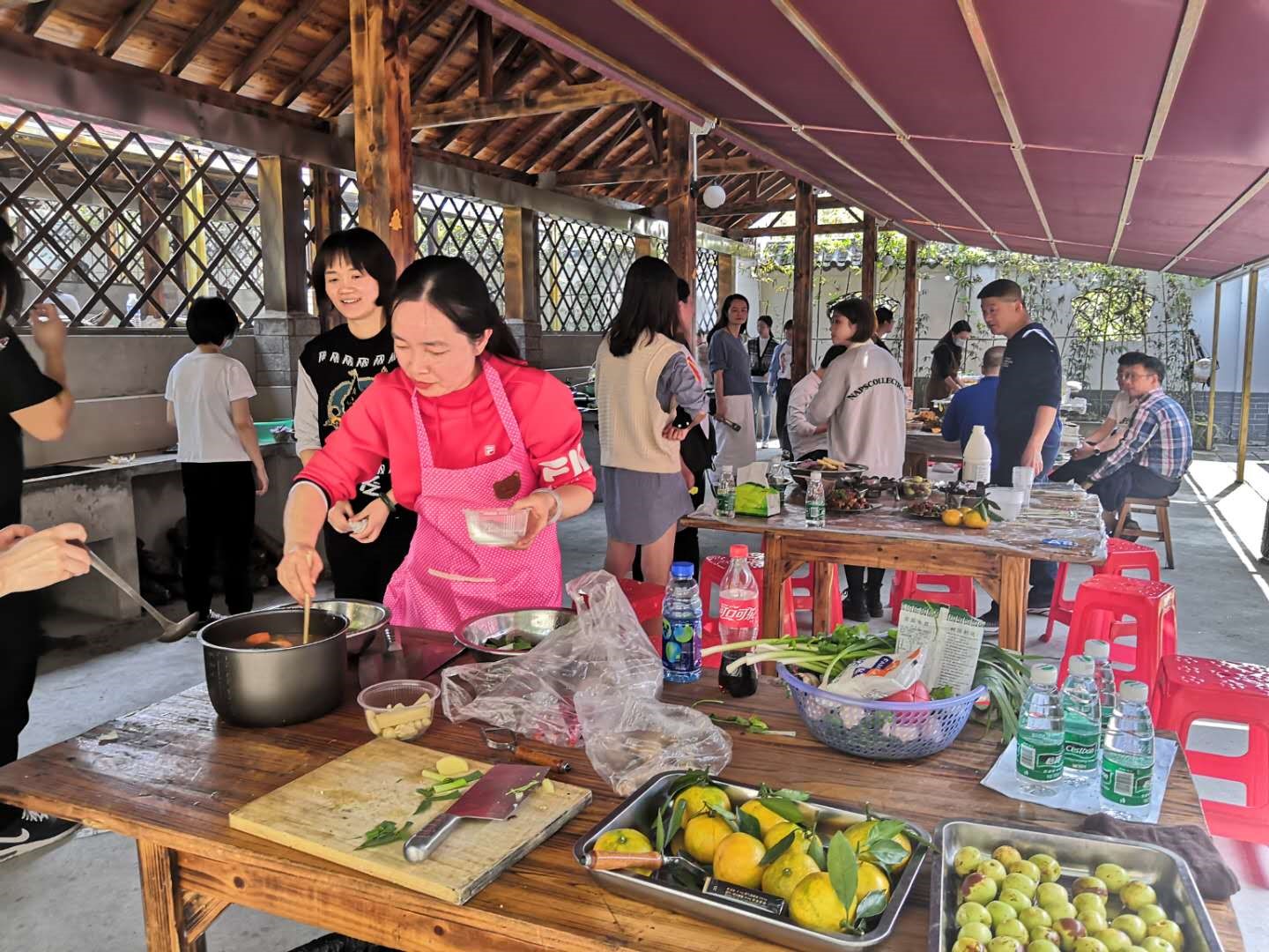 經(jīng)過兩個小時的緊張忙碌,一道道色香味俱全的美味佳肴陸續(xù)展示在大家面前。雖然都是家常菜,但品嘗著用自己汗水換來的勞動成果,一個個喜笑顏開,大家像一家人一樣,圍坐在一起,互品互贊,其樂融融。