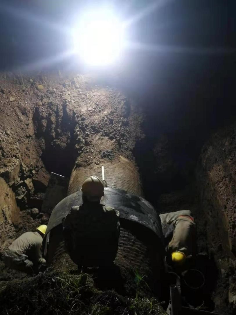 2021年5月2日凌晨3:00,經(jīng)過48小時(shí)的前期準(zhǔn)備及近5個(gè)小時(shí)的精心施工,漳河鎮(zhèn)大栗樹段DN1200源水管線順利完成搶口。目前城區(qū)供水已經(jīng)恢復(fù)正常。