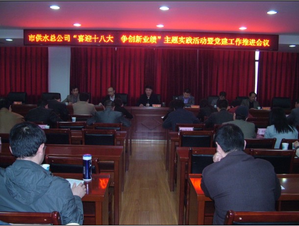 會議由黨委副書記、紀(jì)委書記、工會主席徐黎明主持,黨委書記、副總經(jīng)理陳永根作“喜迎十八大 爭創(chuàng)新業(yè)績”主題實(shí)踐活動動員,并就公司黨建、紀(jì)檢、宣傳、文明創(chuàng)建等作了講話,徐書記宣讀了《關(guān)于2011年度宣傳通訊工作表彰獎勵(lì)兌現(xiàn)的通知》,總經(jīng)理陳衛(wèi)國就當(dāng)前政治形勢、公司困難與機(jī)遇、重點(diǎn)工作、治理慵懶散等作了重要講話。 會上,荊襄供水公司、三水廠、維修處黨支部分別作“喜迎十八大 爭創(chuàng)新業(yè)績”表態(tài)發(fā)言;宣傳工作先進(jìn)單位和個(gè)人分別作了經(jīng)驗(yàn)交流。 |