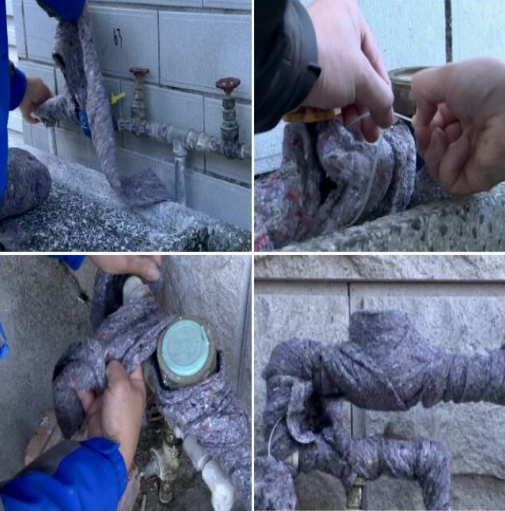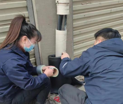 集團及時更新匯總表務相關信息,安排專人對容易上凍或保溫材料缺失的裸露管道、高層小區(qū)管道井上下隔層空隙處加塞保溫棉,防止因樓層串風或漏水造成冰凍的損失。同時,我們在樓道窗戶、消防門等設施處張貼“隨手關閉”提示語,提醒用戶養(yǎng)成隨手關門窗的習慣,進一步預防冰凍情況發(fā)生。