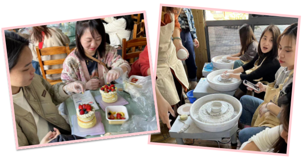 中國文化博大精深,陶藝制作也是由來已久。老師帶領(lǐng)大家了解陶瓷文化,感受陶瓷魅力,介紹陶瓷發(fā)展與成就、講解陶瓷在生活中的運用。女同胞們結(jié)群組隊,一起感受制作陶藝的樂趣。