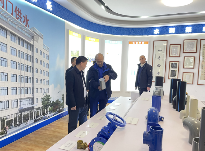 督導(dǎo)組先后觀摩了集團調(diào)度監(jiān)控中心和文化長廊。陳永根介紹了集團組織架構(gòu)、生產(chǎn)運營情況,重點圍繞供水管網(wǎng)分區(qū)計量、漏損控制、管網(wǎng)壓力自動報警、二次供水設(shè)備監(jiān)控和熱線工單派發(fā),闡述智慧水務(wù)建設(shè)新舉措,分享質(zhì)量管理提升新成果。