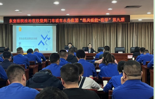 為進(jìn)一步增強(qiáng)集團(tuán)干部職工法律意識,深入推進(jìn)“八五”普法工作,5月4日,水務(wù)集團(tuán)邀請東寶區(qū)法院開展了一堂生動(dòng)的法治教育宣傳課。東寶區(qū)法院副院長黃旭主持培訓(xùn),區(qū)法院子陵法庭庭長張小敏、法官助理王文雅授課。水務(wù)集團(tuán)全體干部職工通過線上線下結(jié)合方式參與。