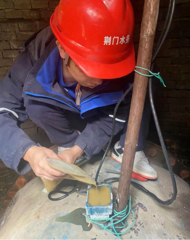 廠領(lǐng)導(dǎo)在綜合評估后,同意其思路,并作安全操作提醒。雖早有心理準(zhǔn)備,但在打開接線盒后的瞬間,李為龍等人還是倒吸一口涼氣。他們發(fā)現(xiàn)整個接線盒內(nèi)部被深色不透明的膠體充滿,無法掌握線路走向。短暫思索后,他們發(fā)揮水務(wù)人不怕苦、能戰(zhàn)斗的精神,嘗試按廠家給出建議,用熱風(fēng)槍加熱密封膠,但事與愿違,效果并不理想,密封膠沒有自動融化流出。李為龍“改巧為笨”,在加熱的同時用小刀清理變軟的膠體。該處操作空間狹小,且不能損壞內(nèi)部的線路和接線端子,必須凝神聚力,是個“精細(xì)活”“體力活”。即便同事們輪番上陣,依然個個汗如雨下。功夫不負(fù)有心人,眾人合力熬過“漫長的”4小時,最終完成了既定任務(wù)。