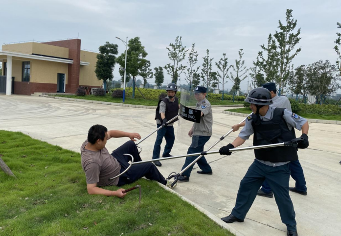 相關負責人在現場宣貫了反恐防暴演練方案,講解了演練要點。安保隊長詳述安全注意事項,并向大家演示了防暴鋼叉等反恐器械的正確用法。