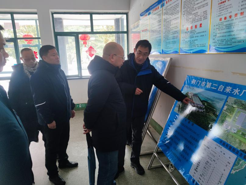 2月6日下午,荊門市政府國資委黨委委員、總經(jīng)濟師陳永濤一行赴荊門水務(wù)集團開展春節(jié)前安全生產(chǎn)工作檢查,水務(wù)集團黨委委員、總工程師劉昕平陪同。