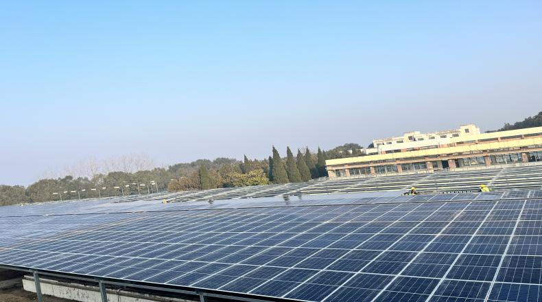 光伏產(chǎn)品是近年來推動我國外貿(mào)穩(wěn)規(guī)模、優(yōu)結(jié)構(gòu)的“新三樣”之一,水務(wù)集團(tuán)積極響應(yīng)國家“雙碳”政策,在充分調(diào)研基礎(chǔ)上,于2023年11月選址第二水廠,充分利用構(gòu)筑物上方空間,架設(shè)光伏系統(tǒng)和配套電氣設(shè)備,采用目前較為成熟的分布式光伏發(fā)電技術(shù),裝機(jī)總?cè)萘?.968兆瓦,安裝光伏板1669塊。