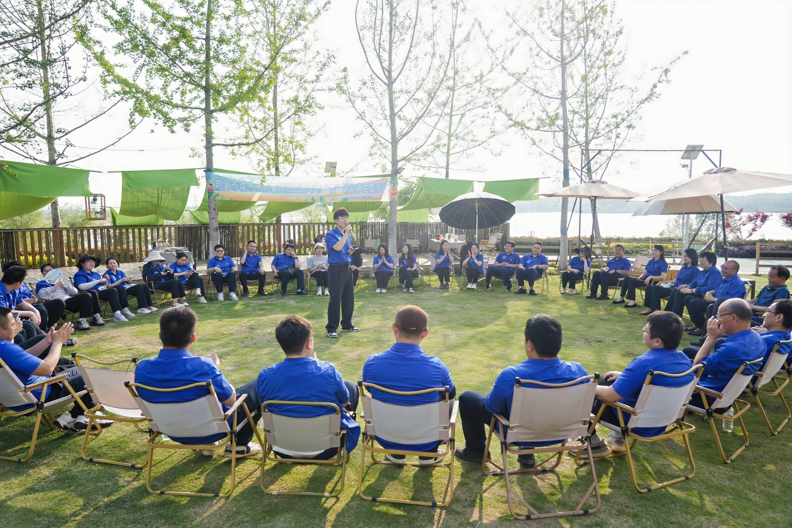 此次活動形式新穎,將敘事會場地從室內(nèi)搬至戶外,青年職工們在草坪帳篷露營地打破思維桎梏,創(chuàng)新靈感泉涌。大家以小組為單位,從自身學(xué)習(xí)生活和工作經(jīng)歷出發(fā),圍繞各自對崗位的理解與追求,暢談未來發(fā)展,共話人生理想?,F(xiàn)場氛圍感十足,充分展現(xiàn)了青年水務(wù)人奮發(fā)有為、積極向上的精神面貌。