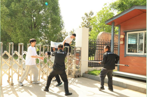 演練前,民警在現(xiàn)場示范了鋼叉、盾牌、警棍等防護器械的組合使用方式。隨后,按計劃開展演練。二水廠一名工作人員模擬“非法闖入可疑人員”,翻越廠區(qū)大門進入生產(chǎn)區(qū),安保人員發(fā)現(xiàn)異常立即啟動應(yīng)急預(yù)案,組織人員趕赴現(xiàn)場的同時請求警力支援,最終合力將其制服,并交由警察帶離現(xiàn)場。