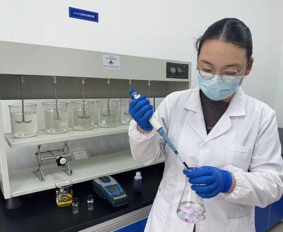 圖為詠泉水質(zhì)工作人員取水樣化驗