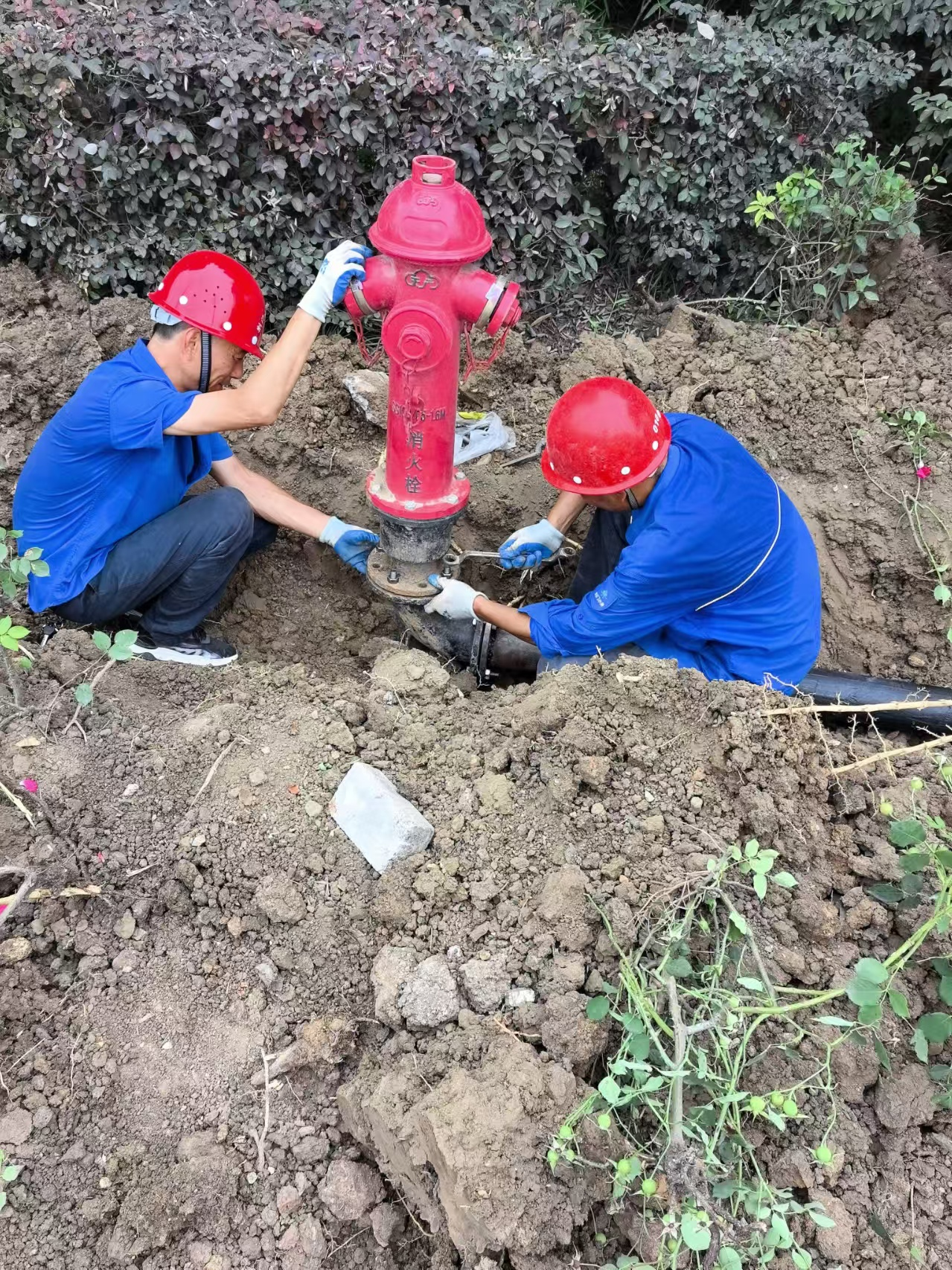 圖為維修人員維修消防栓