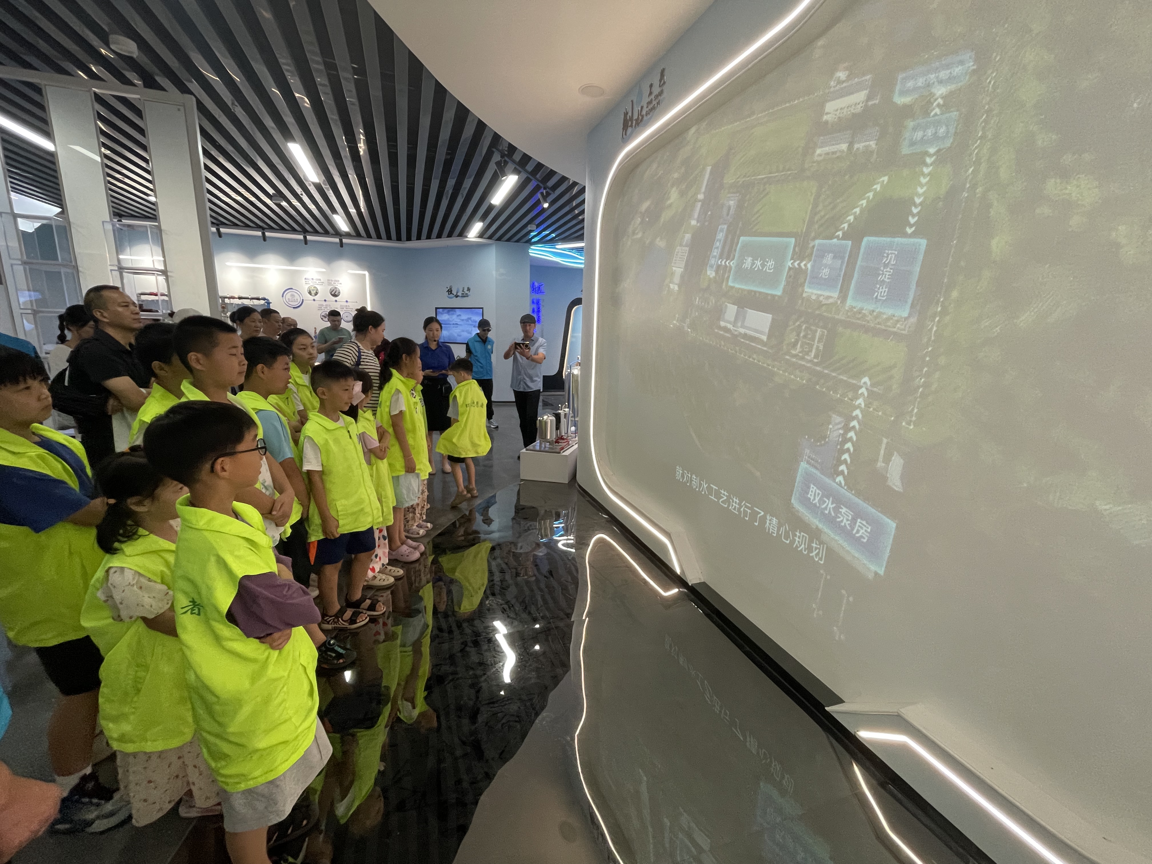 圖為環(huán)保志愿者參觀水務(wù)集團(tuán)智慧展廳