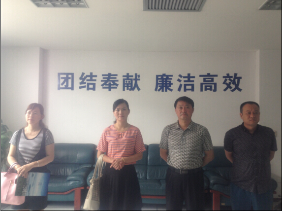 荊門市委委員、團(tuán)市委書記李莉麗(左二)代表市人大走訪市人大代表、市供水總公司總經(jīng)理陳衛(wèi)國(右二),同時調(diào)研公司共青團(tuán)工作。圖為總經(jīng)理陳衛(wèi)國、副總經(jīng)理、公司團(tuán)委書記曾波(右一)陪同在調(diào)度中心考察時情景。