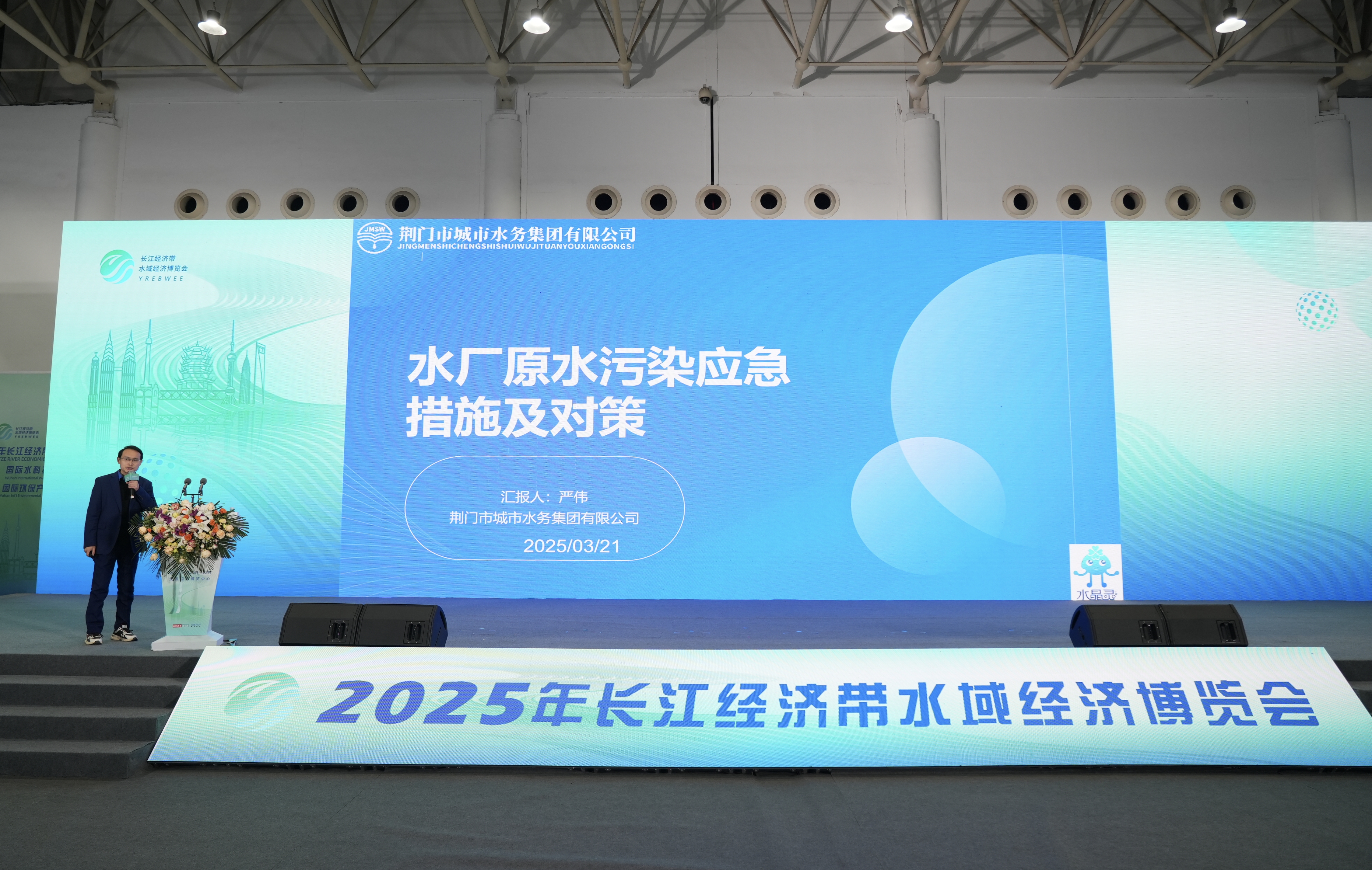 近日,第二屆長(zhǎng)江經(jīng)濟(jì)帶水域經(jīng)濟(jì)博覽會(huì)在武漢隆重開(kāi)幕。荊門(mén)水務(wù)集團(tuán)高級(jí)水質(zhì)專(zhuān)家嚴(yán)偉以《水廠原水污染應(yīng)急措施及對(duì)策》為題,從“污染事故應(yīng)急響應(yīng)體系、關(guān)鍵處理技術(shù)矩陣、典型事故處置剖析、法律保障機(jī)制建設(shè)、智慧水務(wù)防控體系、長(zhǎng)效防控體系構(gòu)建“等六個(gè)方面,展示了荊門(mén)水務(wù)在飲用水安全防護(hù)領(lǐng)域的突破性成果,為長(zhǎng)江經(jīng)濟(jì)帶水質(zhì)安全治理提供了創(chuàng)新思路。