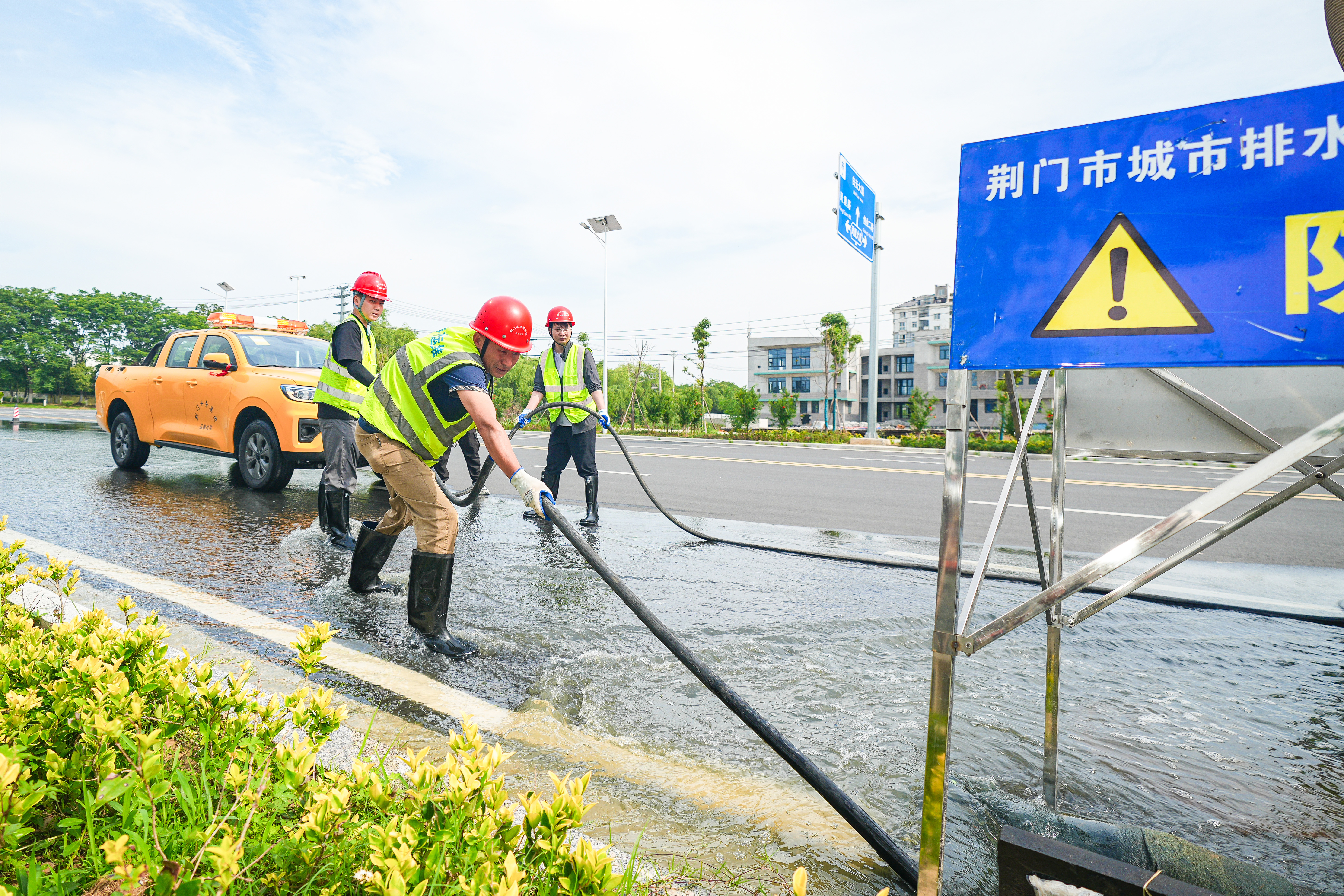 運(yùn)用大功率移動(dòng)泵車(chē)強(qiáng)排泵對(duì)道路積水位置進(jìn)行抽排