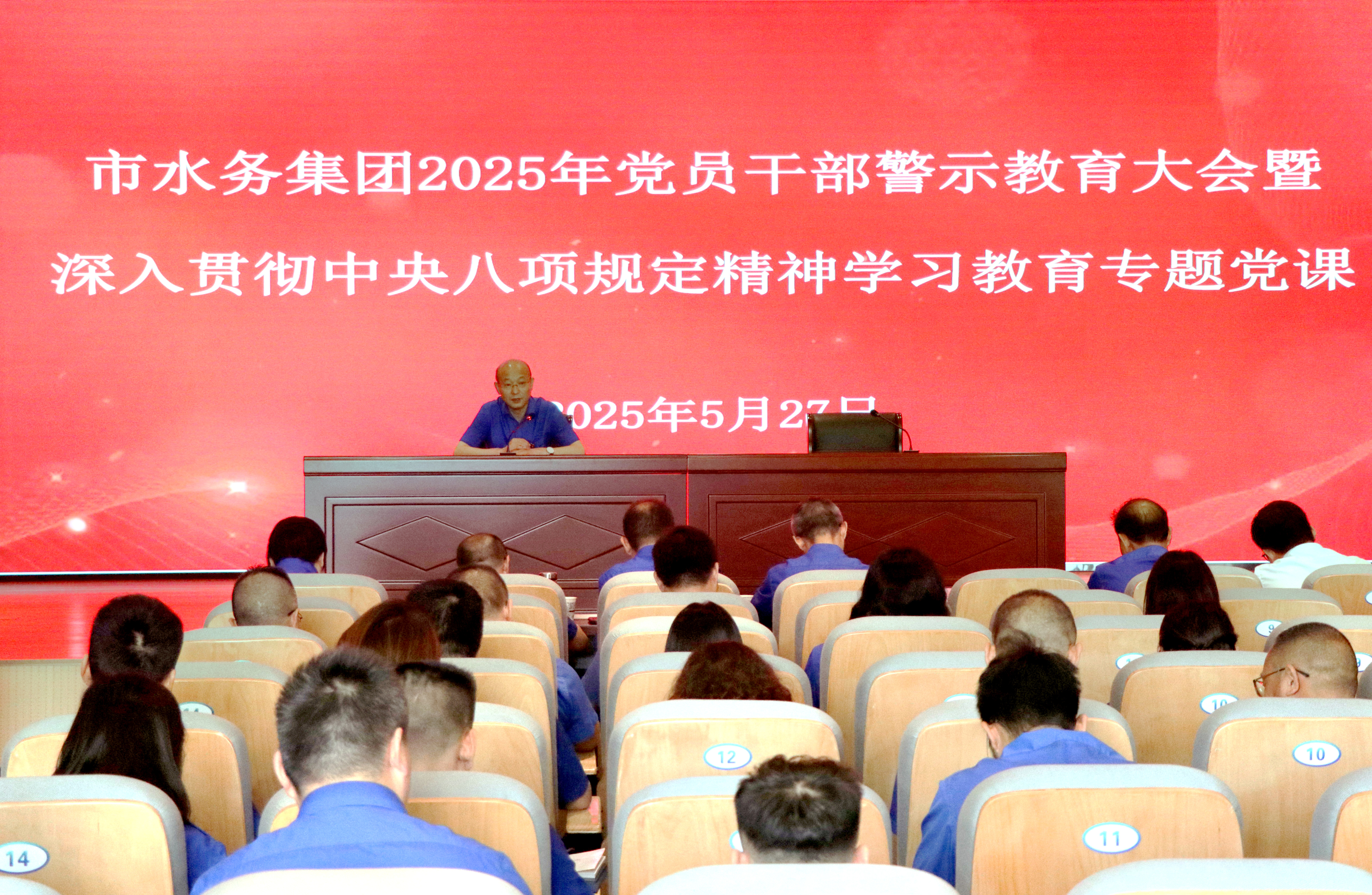 按照省、市關(guān)于深化中央八項規(guī)定精神學習教育相關(guān)要求,5月27日上午,市水務集團召開黨員干部警示教育大會暨深入貫徹中央八項規(guī)定精神學習教育專題黨課。會議組織觀看警示教育片,集團黨委書記、董事長陳永根講授專題黨課,集團黨委委員、紀委書記劉高軼主持會議。集團全體高層領導、中層干部及機關(guān)黨員參加會議。