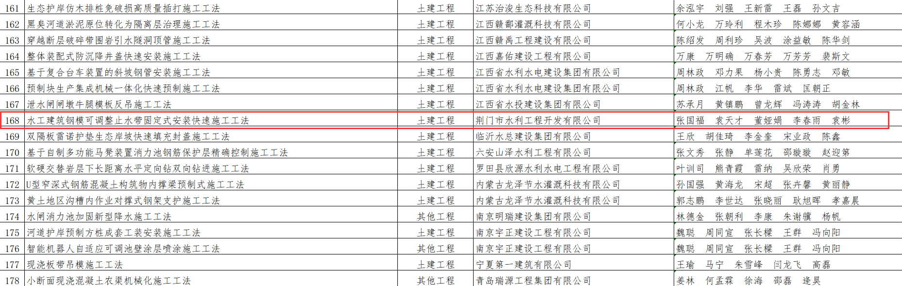 近日,中國(guó)水利工程協(xié)會(huì)公布了2025年度水利行業(yè)工法名單,荊門(mén)市城市水務(wù)集團(tuán)有限公司下屬單位荊門(mén)市水利工程開(kāi)發(fā)有限公司(以下簡(jiǎn)稱“荊門(mén)水發(fā)”)申報(bào)的“水工建筑鋼??烧{(diào)整止水帶固定式安裝快速施工工法”順利通過(guò)評(píng)審,正式被確認(rèn)為中國(guó)水利行業(yè)工法,為水利工程標(biāo)準(zhǔn)化、高效化建設(shè)提供了有力支撐。
