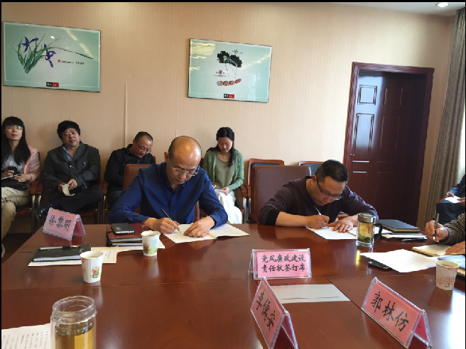 4月28日,公司召開黨委中心組擴(kuò)大會議,對“兩學(xué)一做”活動做出安排部署,并進(jìn)行系統(tǒng)理論學(xué)習(xí)。會前,黨委書記、總經(jīng)理陳永根、黨委副書記、紀(jì)委書記、工會主席徐黎明分別與各支部書記、各單位(處室)負(fù)責(zé)人簽訂2016年黨風(fēng)廉政建設(shè)責(zé)任狀。
