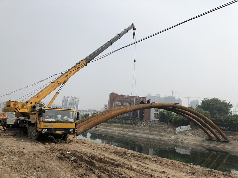 6月2日,跨總干渠DN800拱形鋼管吊裝合龍,標(biāo)志著荊門市供水總公司三水廠跨總干渠吊裝工程順利完成。至此,跨總干渠拱形鋼成為總干渠上又一道新的“彩虹橋”風(fēng)景。