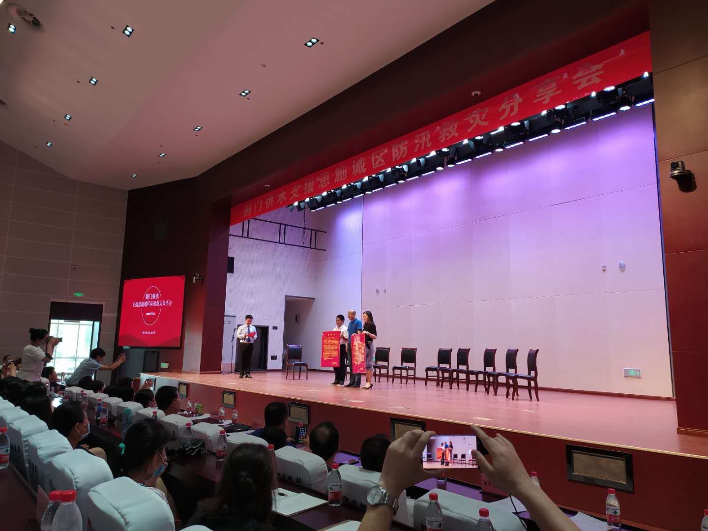 7月31日下午,市供水總公司在荊門(mén)劇院舉行支援恩施城區(qū)防汛救災(zāi)分享會(huì),表彰支援恩施城區(qū)防汛救災(zāi)中的先進(jìn)個(gè)人,進(jìn)一步激發(fā)全員干事創(chuàng)業(yè)工作熱情,營(yíng)造公司上下創(chuàng)先爭(zhēng)優(yōu)工作氛圍。市城控集團(tuán)黨委副書(shū)記張本華、上海連城集團(tuán)有限公司荊門(mén)辦事處總經(jīng)理吳彬婷、奇力士(武漢)智慧水務(wù)科技有限公司董事長(zhǎng)畢濤應(yīng)邀出席會(huì)議,公司黨委班子全體成員,中層干部、班組長(zhǎng)和機(jī)關(guān)全員、年輕職工代表等160余人參加會(huì)議。