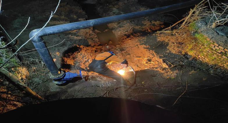 為保障正常供水、防止爆管和影響周邊農戶生產(chǎn)勞作等,引起二水廠領導們的高度重視,研究決定對漏點進行封堵,經(jīng)過前期充分的準備。